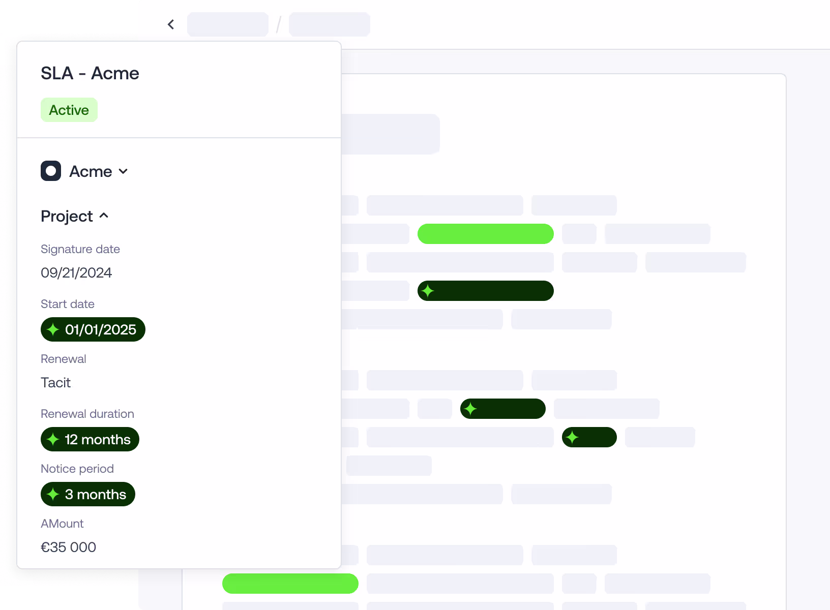 Oro analyzes your contracts and extracts the essential data in a matter of seconds.